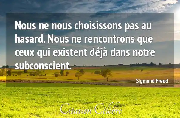 Nous ne nous choisissons pas au hasard. Nous ne rencontrons que ceux qui existent déjà dans notre subconscient.