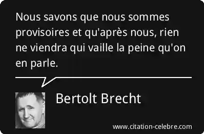 Citation Bertolt Brecht rien : Nous savons que nous sommes provisoires et qu'après nous, rien...
