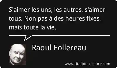 S'aimer les uns, les autres, s'aimer tous. Non pas à des heures fixes, mais toute la vie.