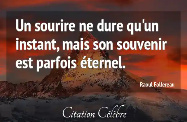 Un sourire ne dure qu'un instant, mais son souvenir est parfois éternel.
