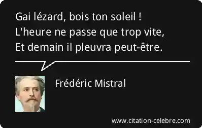 Gai lézard, bois ton soleil !L'heure ne passe que trop vite,Et demain il pleuvra peut-être.