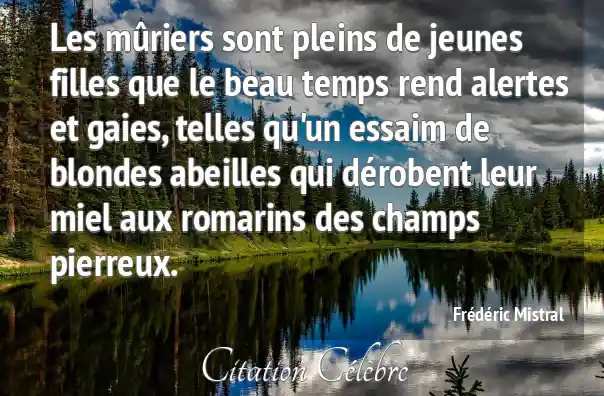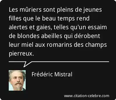 Les mûriers sont pleins de jeunes filles que le beau temps rend alertes et gaies, telles qu'un essaim de blondes abeilles qui dérobent leur miel aux romarins des champs pierreux.