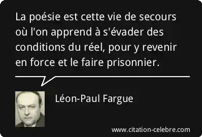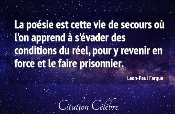 La poésie est cette vie de secours où l'on apprend à s'évader des conditions du réel, pour y revenir en force et le faire prisonnier.