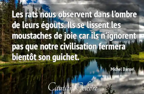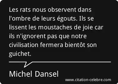 Les rats nous observent dans l'ombre de leurs égouts. Ils se lissent les moustaches de joie car ils n'ignorent pas que notre civilisation fermera bientôt son guichet.