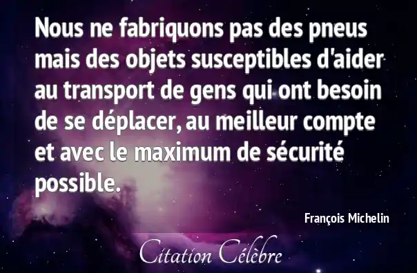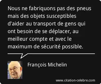 Nous ne fabriquons pas des pneus mais des objets susceptibles d'aider au transport de gens qui ont besoin de se déplacer, au meilleur compte et avec le maximum de sécurité possible.