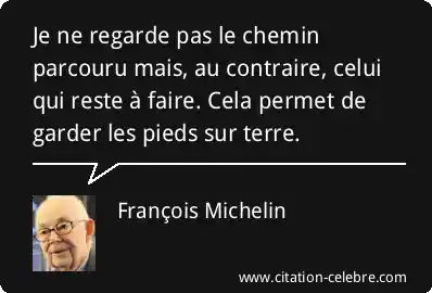 Je ne regarde pas le chemin parcouru mais, au contraire, celui qui reste à faire. Cela permet de garder les pieds sur terre.