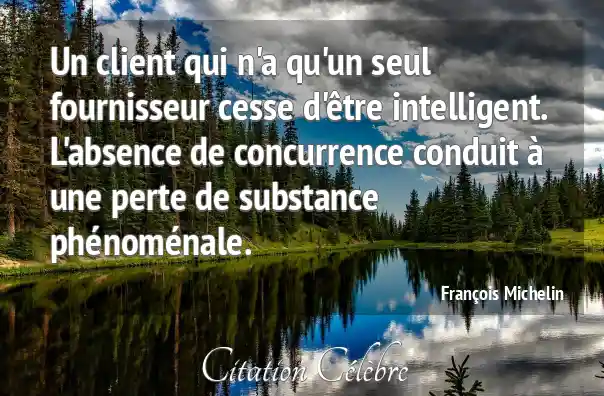 Un client qui n'a qu'un seul fournisseur cesse d'être intelligent. L'absence de concurrence conduit à une perte de substance phénoménale.