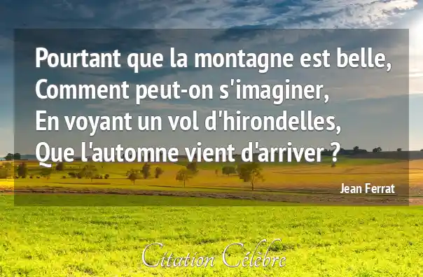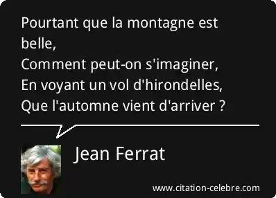 Pourtant que la montagne est belle,Comment peut-on s'imaginer,En voyant un vol d'hirondelles,Que l'automne vient d'arriver ?