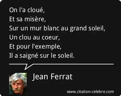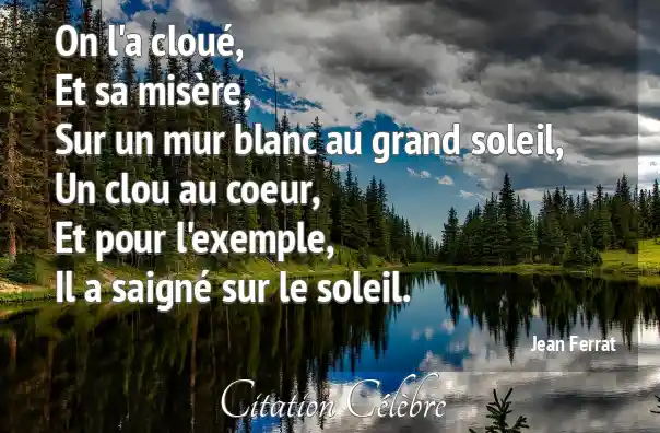 On l'a cloué,Et sa misère,Sur un mur blanc au grand soleil,Un clou au coeur,Et pour l'exemple,Il a saigné sur le soleil.