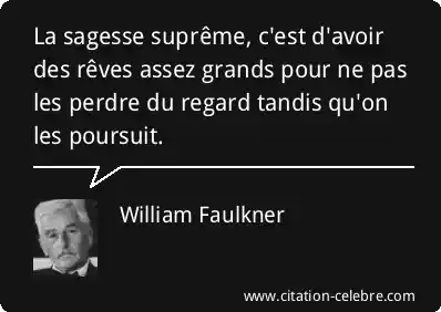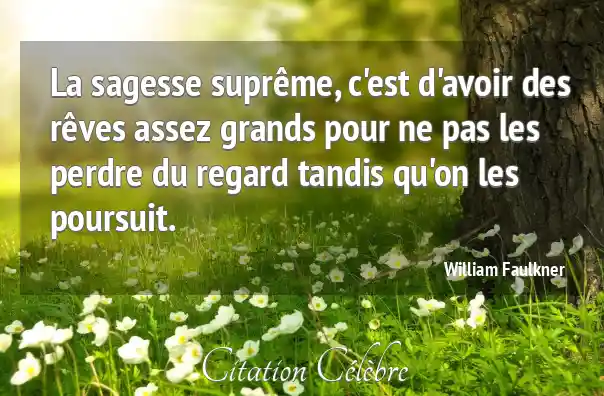 La sagesse suprême, c'est d'avoir des rêves assez grands pour ne pas les perdre du regard tandis qu'on les poursuit.