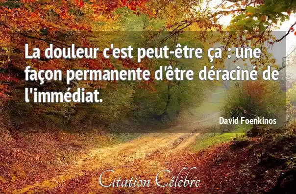 La douleur c'est peut-être ça : une façon permanente d'être déraciné de l'immédiat.