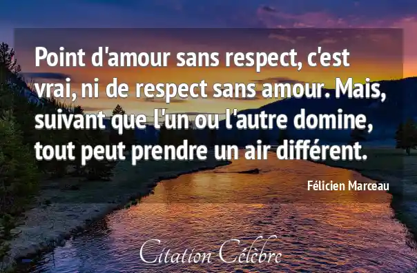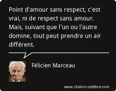 Point d'amour sans respect, c'est vrai, ni de respect sans amour. Mais, suivant que l'un ou l'autre domine, tout peut prendre un air différent.