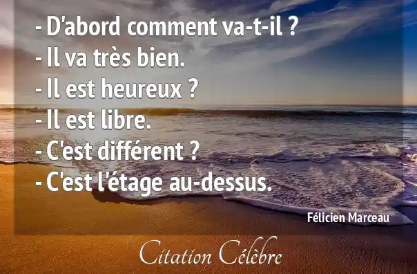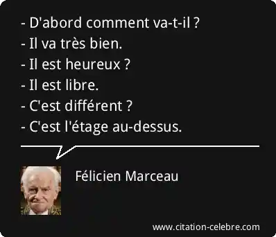 - D'abord comment va-t-il ?- Il va très bien.- Il est heureux ?- Il est libre.- C'est différent ?- C'est l'étage au-dessus.
