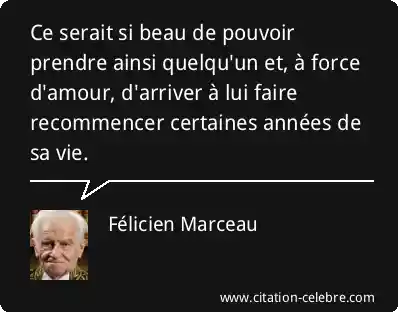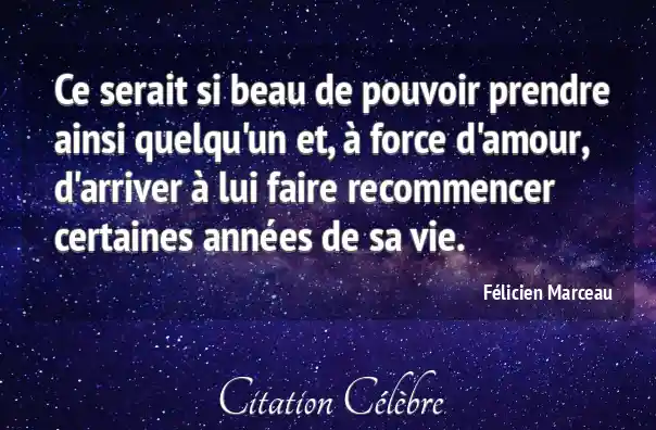 Ce serait si beau de pouvoir prendre ainsi quelqu'un et, à force d'amour, d'arriver à lui faire recommencer certaines années de sa vie.