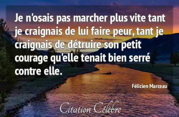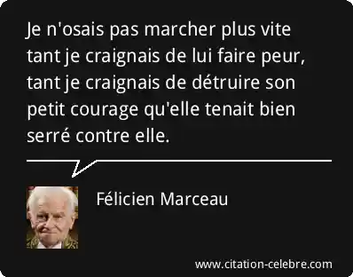 Je n'osais pas marcher plus vite tant je craignais de lui faire peur, tant je craignais de détruire son petit courage qu'elle tenait bien serré contre elle.