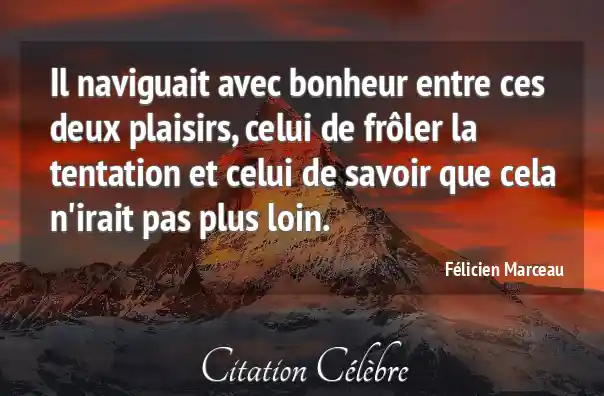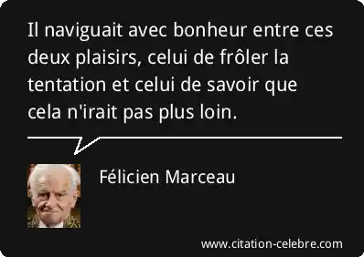 Il naviguait avec bonheur entre ces deux plaisirs, celui de frôler la tentation et celui de savoir que cela n'irait pas plus loin.