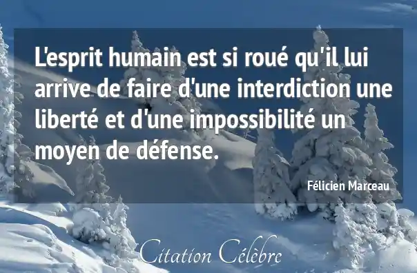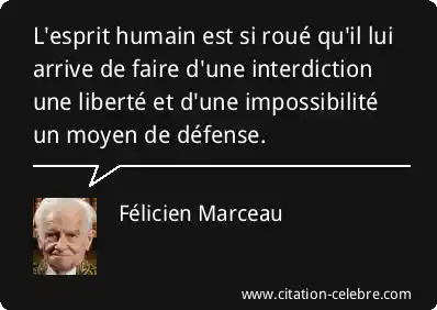L'esprit humain est si roué qu'il lui arrive de faire d'une interdiction une liberté et d'une impossibilité un moyen de défense.