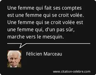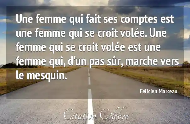 Une femme qui fait ses comptes est une femme qui se croit volée. Une femme qui se croit volée est une femme qui, d'un pas sûr, marche vers le mesquin.