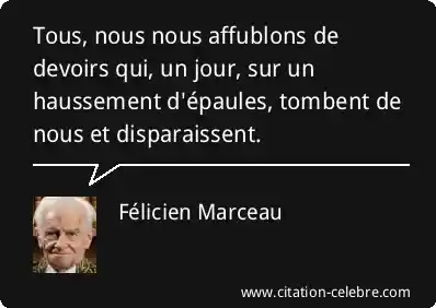 Tous, nous nous affublons de devoirs qui, un jour, sur un haussement d'épaules, tombent de nous et disparaissent.