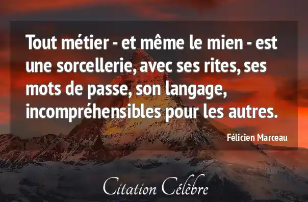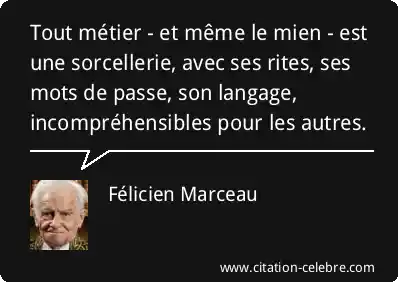 Tout métier - et même le mien - est une sorcellerie, avec ses rites, ses mots de passe, son langage, incompréhensibles pour les autres.