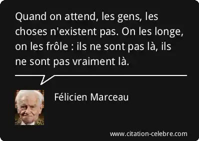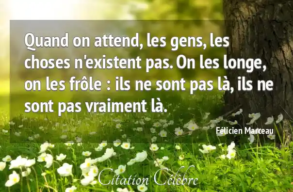 Quand on attend, les gens, les choses n'existent pas. On les longe, on les frôle : ils ne sont pas là, ils ne sont pas vraiment là.