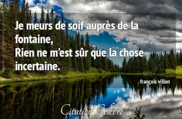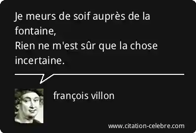 Je meurs de soif auprès de la fontaine,Rien ne m'est sûr que la chose incertaine.