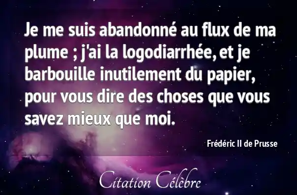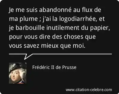 Je me suis abandonné au flux de ma plume ; j'ai la logodiarrhée, et je barbouille inutilement du papier, pour vous dire des choses que vous savez mieux que moi.