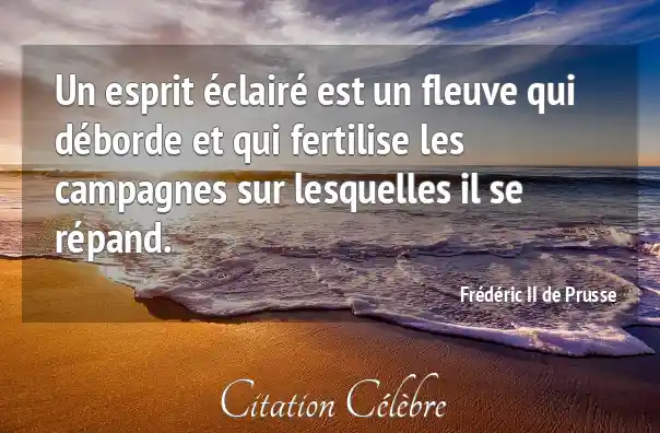 Un esprit éclairé est un fleuve qui déborde et qui fertilise les campagnes sur lesquelles il se répand.