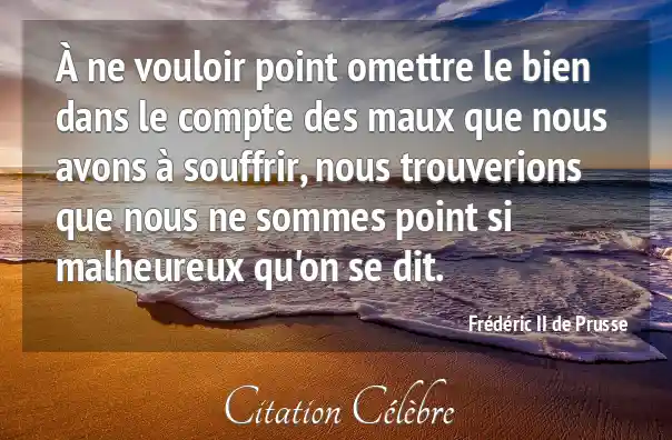 À ne vouloir point omettre le bien dans le compte des maux que nous avons à souffrir, nous trouverions que nous ne sommes point si malheureux qu'on se dit.