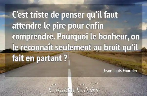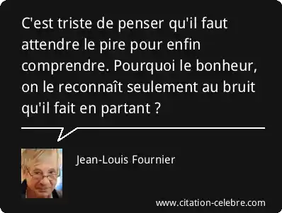 C'est triste de penser qu'il faut attendre le pire pour enfin comprendre. Pourquoi le bonheur, on le reconnaît seulement au bruit qu'il fait en partant ?