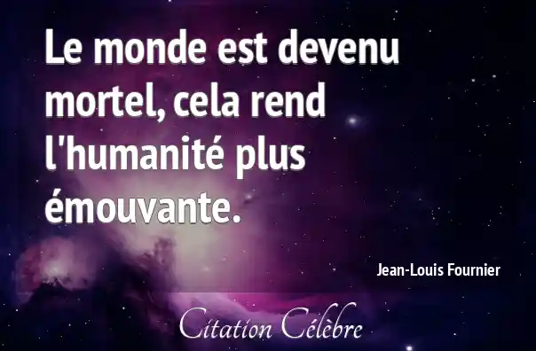 Le monde est devenu mortel, cela rend l'humanité plus émouvante.