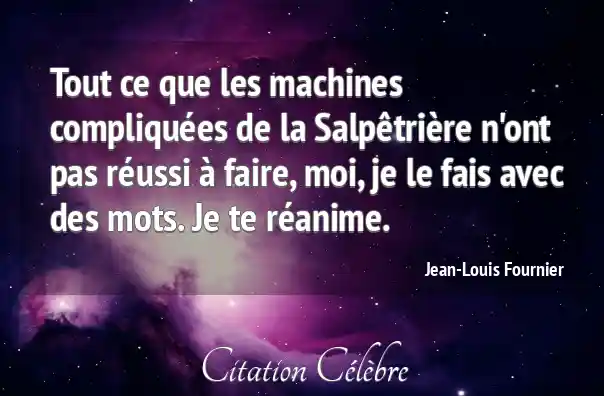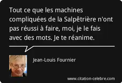 Tout ce que les machines compliquées de la Salpêtrière n'ont pas réussi à faire, moi, je le fais avec des mots. Je te réanime.