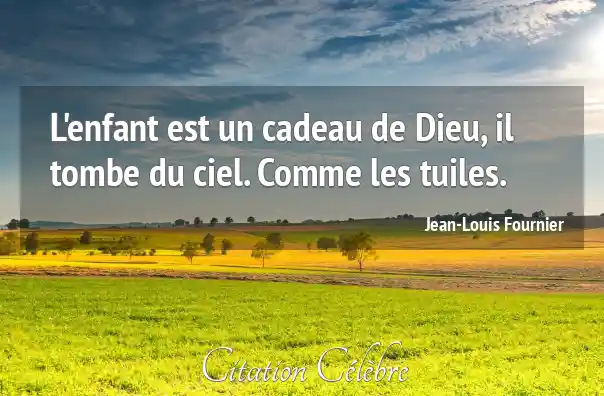 L'enfant est un cadeau de Dieu, il tombe du ciel. Comme les tuiles.
