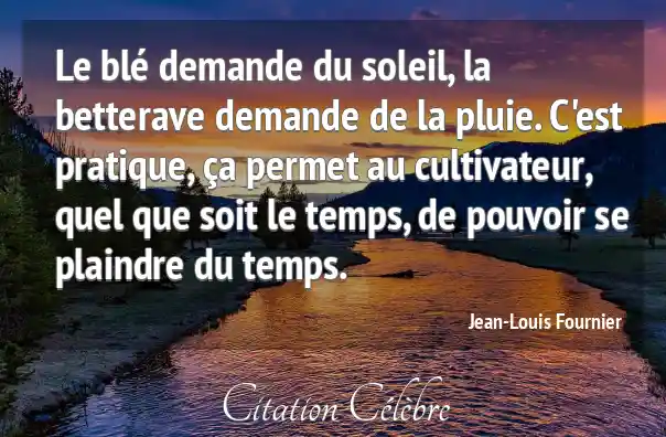 Le blé demande du soleil, la betterave demande de la pluie. C'est pratique, ça permet au cultivateur, quel que soit le temps, de pouvoir se plaindre du temps.