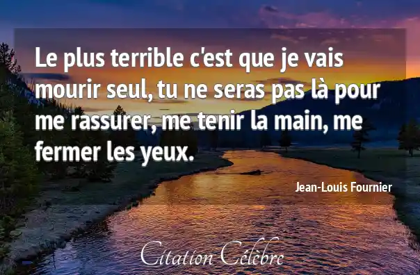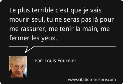Le plus terrible c'est que je vais mourir seul, tu ne seras pas là pour me rassurer, me tenir la main, me fermer les yeux.