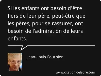 Si les enfants ont besoin d'être fiers de leur père, peut-être que les pères, pour se rassurer, ont besoin de l'admiration de leurs enfants.