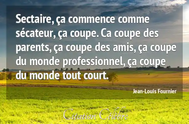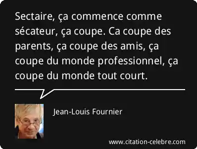Sectaire, ça commence comme sécateur, ça coupe. Ca coupe des parents, ça coupe des amis, ça coupe du monde professionnel, ça coupe du monde tout court.