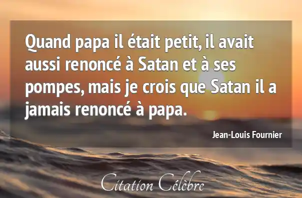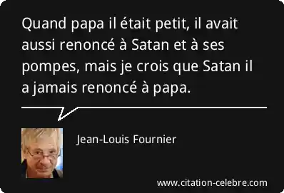 Quand papa il était petit, il avait aussi renoncé à Satan et à ses pompes, mais je crois que Satan il a jamais renoncé à papa.