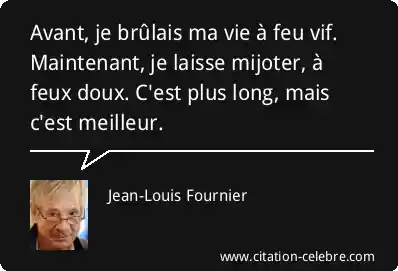 Avant, je brûlais ma vie à feu vif. Maintenant, je laisse mijoter, à feux doux. C'est plus long, mais c'est meilleur.
