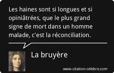 Les haines sont si longues et si opiniâtrées, que le plus grand signe de mort dans un homme malade, c'est la réconciliation.