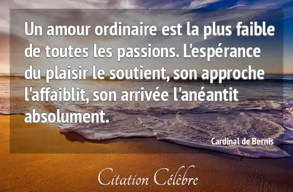 Un amour ordinaire est la plus faible de toutes les passions. L'espérance du plaisir le soutient, son approche l'affaiblit, son arrivée l'anéantit absolument.