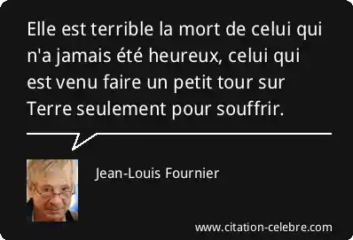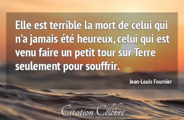 Elle est terrible la mort de celui qui n'a jamais été heureux, celui qui est venu faire un petit tour sur Terre seulement pour souffrir.