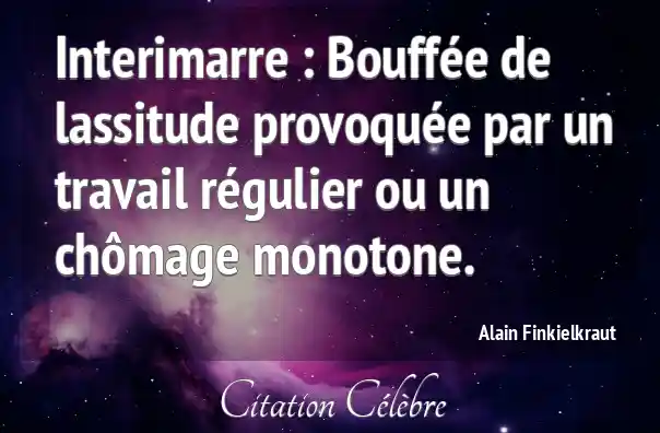 Interimarre : Bouffée de lassitude provoquée par un travail régulier ou un chômage monotone.