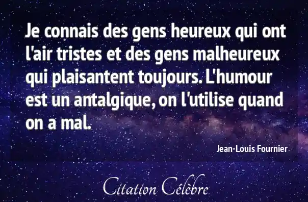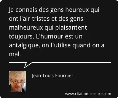 Je connais des gens heureux qui ont l'air tristes et des gens malheureux qui plaisantent toujours. L'humour est un antalgique, on l'utilise quand on a mal.