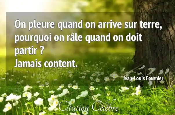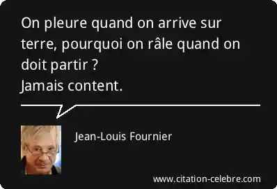 On pleure quand on arrive sur terre, pourquoi on râle quand on doit partir ?Jamais content.