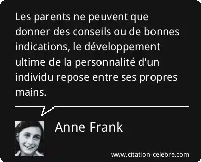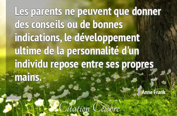 Les parents ne peuvent que donner des conseils ou de bonnes indications, le développement ultime de la personnalité d'un individu repose entre ses propres mains.