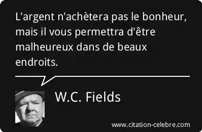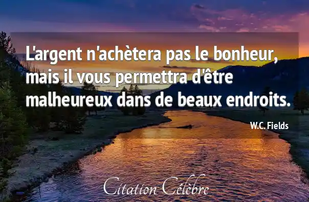 L'argent n'achètera pas le bonheur, mais il vous permettra d'être malheureux dans de beaux endroits.