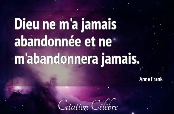 Dieu ne m'a jamais abandonnée et ne m'abandonnera jamais.