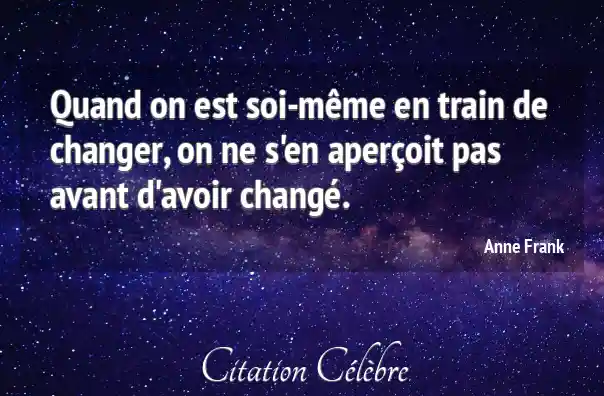 Quand on est soi-même en train de changer, on ne s'en aperçoit pas avant d'avoir changé.