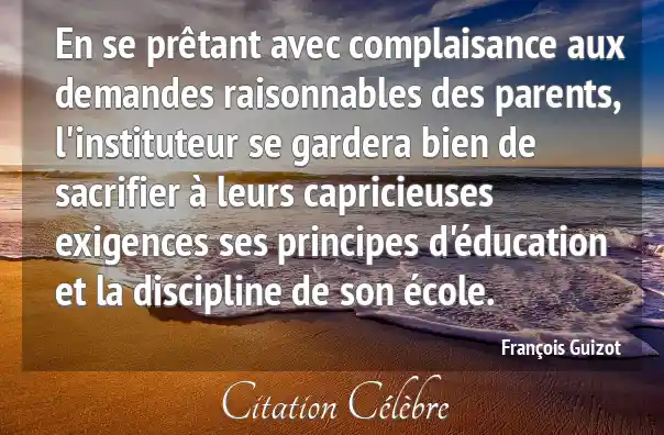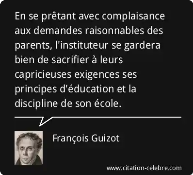 En se prêtant avec complaisance aux demandes raisonnables des parents, l'instituteur se gardera bien de sacrifier à leurs capricieuses exigences ses principes d'éducation et la discipline de son école.